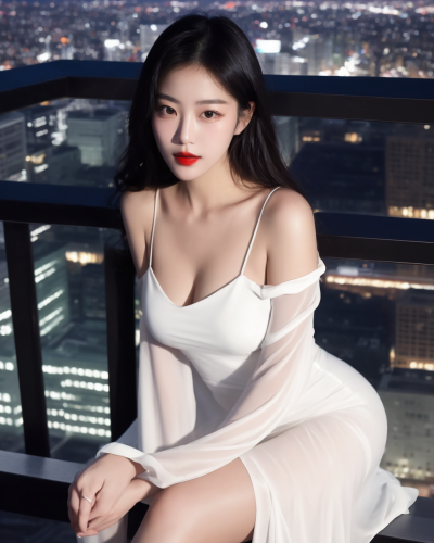 컨셉: 펜트하우스의 유혹 (Penthouse Seduction):긍정 프롬프트:"한국 20대 여성,