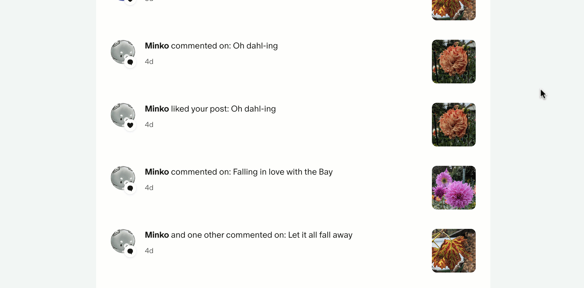 - 게시물에 새 댓글이나 좋아요가 남겨지면 해당 알림이 '새로 작성됨'으로 표시됩니다. 해당 알림을 그날 이미 본 경우에도 마찬가지입니다.