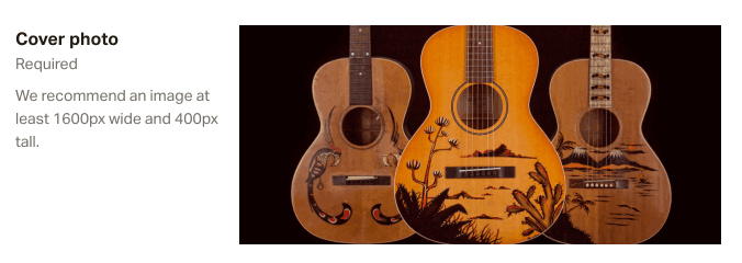 최대 보기에서 커버 사진은 1600 x 400픽셀 로 표시됩니다 . 최소 1200 x 675픽셀 크기의 와이드 이미지를 사용하는 것이 좋습니다(더 작은 크기도 작동하지만 약간 픽셀화되어 보일 수 있음).