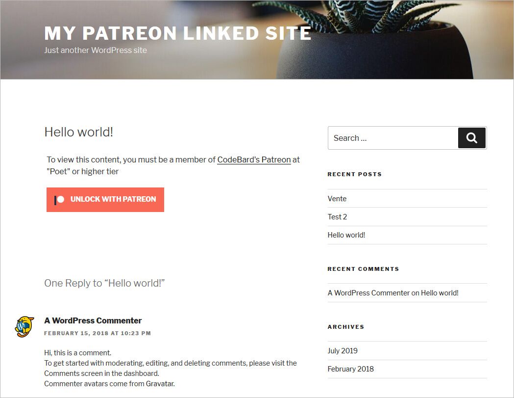 이제 당신 이나 팬이 인증 없이 이 게시물을 방문 하면 해당 게시물 은 후원자 에게만 잠금 됩니다 .귀하의 사이트를 방문한 익명의 방문자 와 귀하의 사이트의 기존 비후원자 사용자도 콘텐츠가 잠긴 것을 알게 될 것입니다. 둘 다 Patreon으로 잠금 해제 버튼을 클릭 하여 게시물을 잠금 해제 할 수 있습니다 .