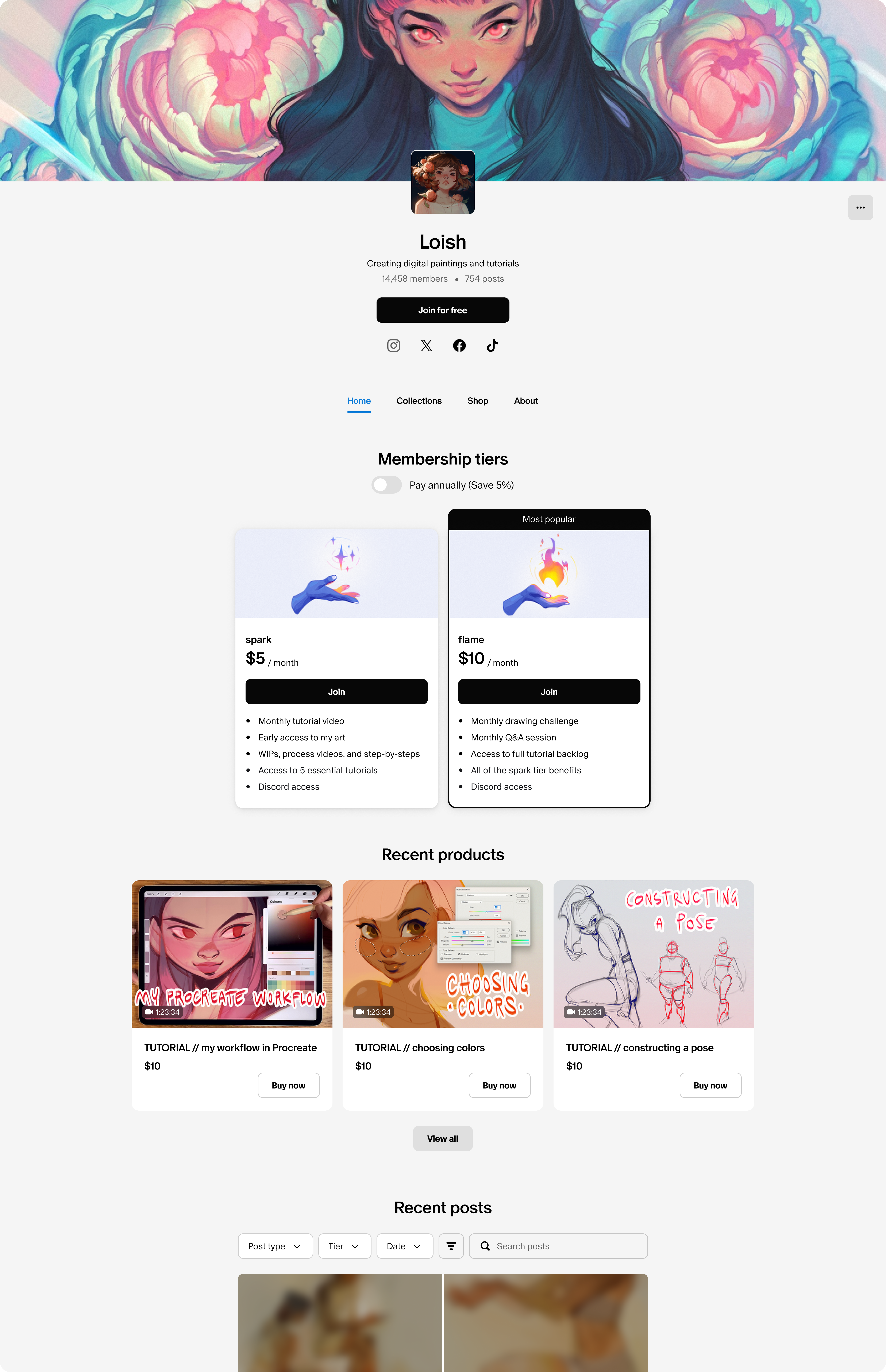 유료 멤버십은 또한 반복적인 수입을 제공하므로 좋아하는 일을 계속할 수 있습니다. 특별 행사 및 무료 체험과 같은 기능도 제공되어 창의적인 사업을 키우고 성장시키는 데 도움이 됩니다.
