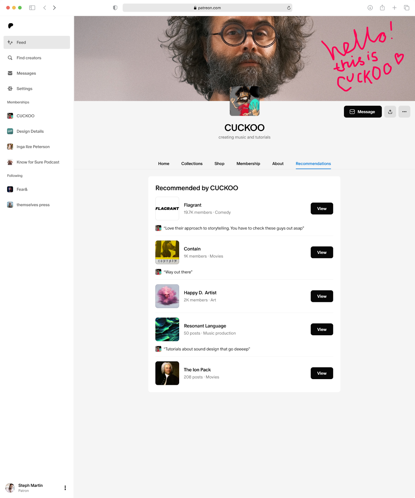 저희는 크리에이터가 서로를 추천하고 교차 홍보하기 쉽도록 크리에이터 추천을 구축했습니다. 사용하면 다른 크리에이터를 멤버에게 추천할 수 있습니다(무료 및 유료). 이는 동료 크리에이터의 가시성을 높이고 멤버에게 새롭고 흥미로운 콘텐츠를 소개하는 좋은 방법입니다.