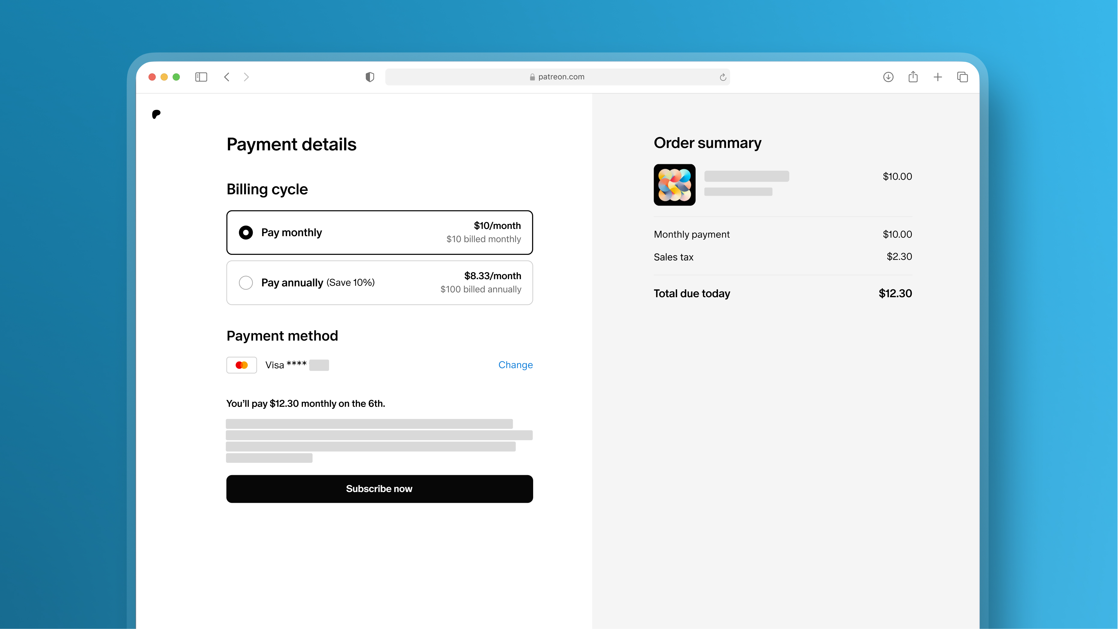크리에이터 페이지를 어떻게 구성했는지, 유료 구독 및/또는 일회성 구매를 제공하는지 여부에 따라 멤버에게 요금이 즉시 청구되거나, 매월 1일에 청구되거나, 창작물당 청구될 수 있습니다.