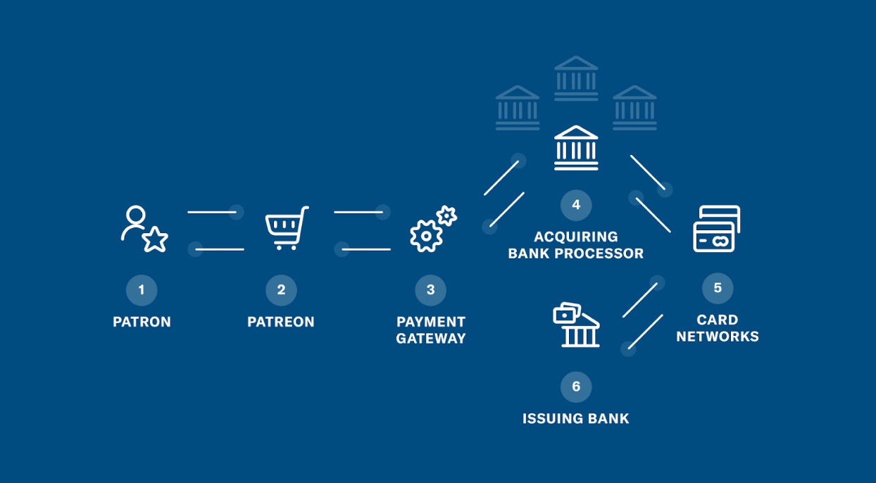 Patreon이 창작자를 대신하여 후원자에게 요금을 청구할 때마다(매월, 매월 1일 또는 창작물당) 돈은 일련의 복잡한 시스템을 통해 교환됩니다. 이는 Patreon이 결제를 처리하는 방식일 뿐만 아니라 문자 그대로 전자 상거래가 작동하는 방식입니다. 돈을 요청한 다음 몇 초 만에 접근하거나 거부합니다.