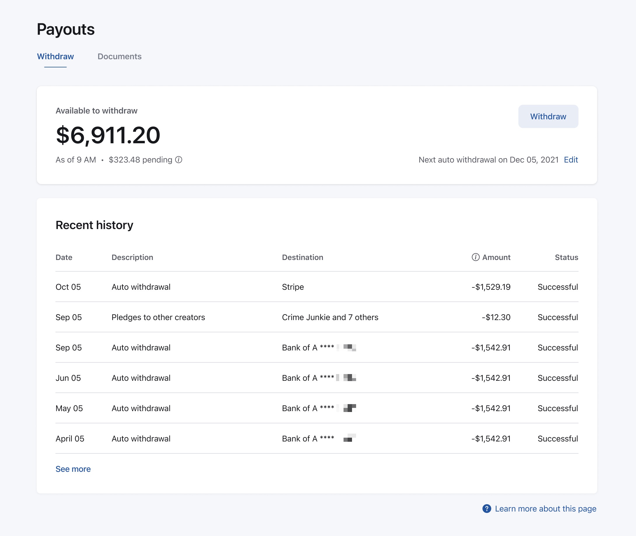 작업 목록에 항목이 하나 줄었으면 하는 경우 자동 지급을 선택할 수도 있습니다. 활성화하면 잔액이 있는 한 매월 5일에 자동 지급이 시작됩니다. 지급 페이지 에서 자동 지급을 활성화하거나 비활성화할 수 있습니다 .